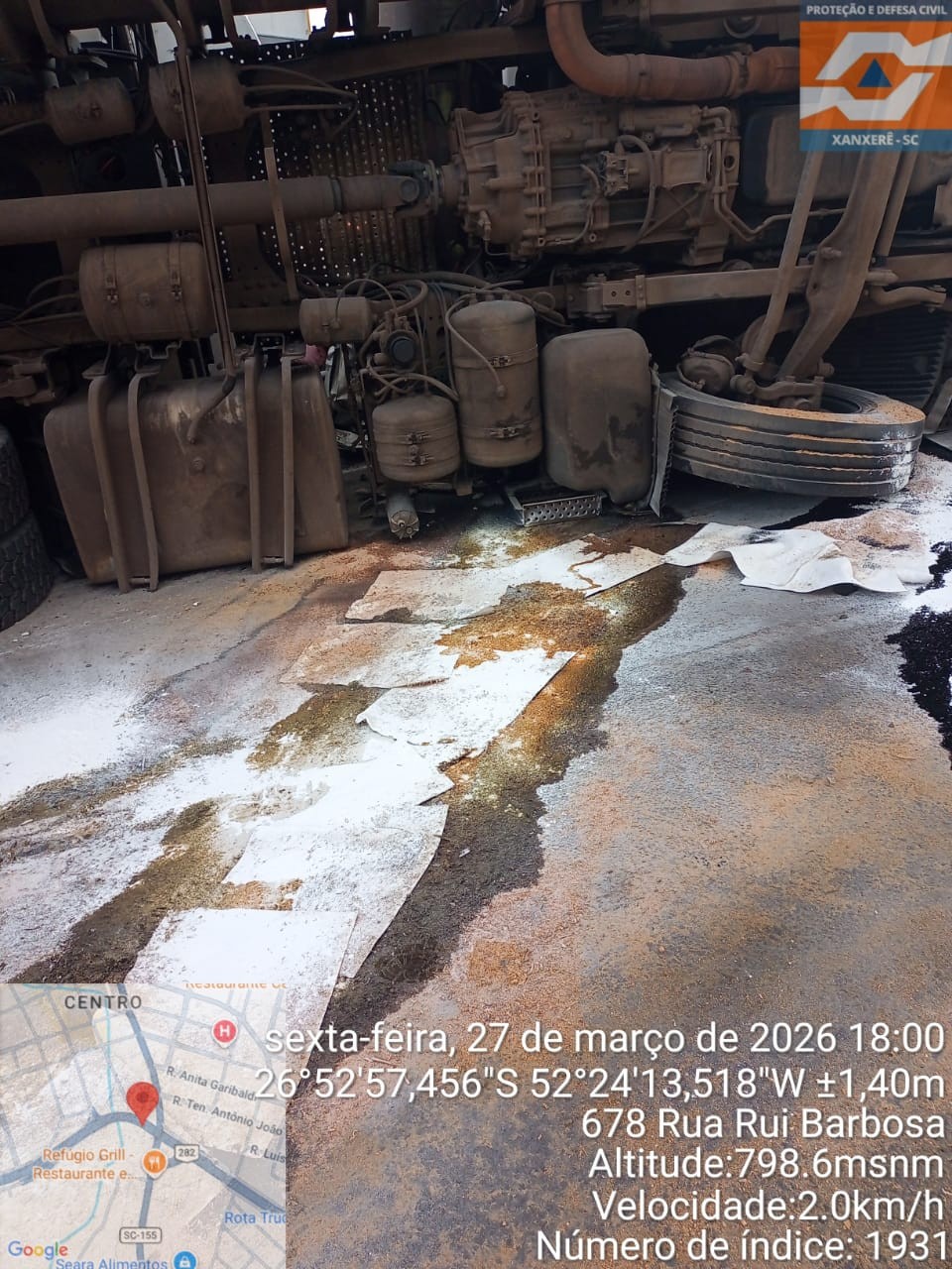 Uma carreta carregada com cortes de carne congelados tombou na tarde desta sexta-feira, dia 27, na BR-282, em Xanxerê, no Oeste catarinense.