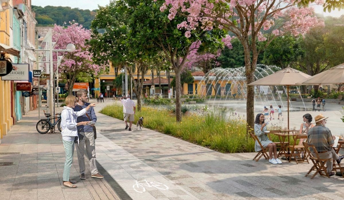 Proposta do escritório Gehl Architects traz possíveis soluções para reduzir temperaturas no Centro de Florianópolis; rua Francisco Tolentino, na região do Mercado Público, pode passar por mudanças