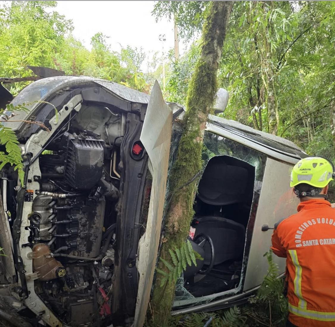 A condutora de um Chevrolet Prisma seguia no sentido Cará quando perdeu o controle do veículo. O carro saiu da pista, invadiu a área de vegetação às margens da rodovia e capotou na ribanceira, ficando parcialmente sustentado por uma árvore.