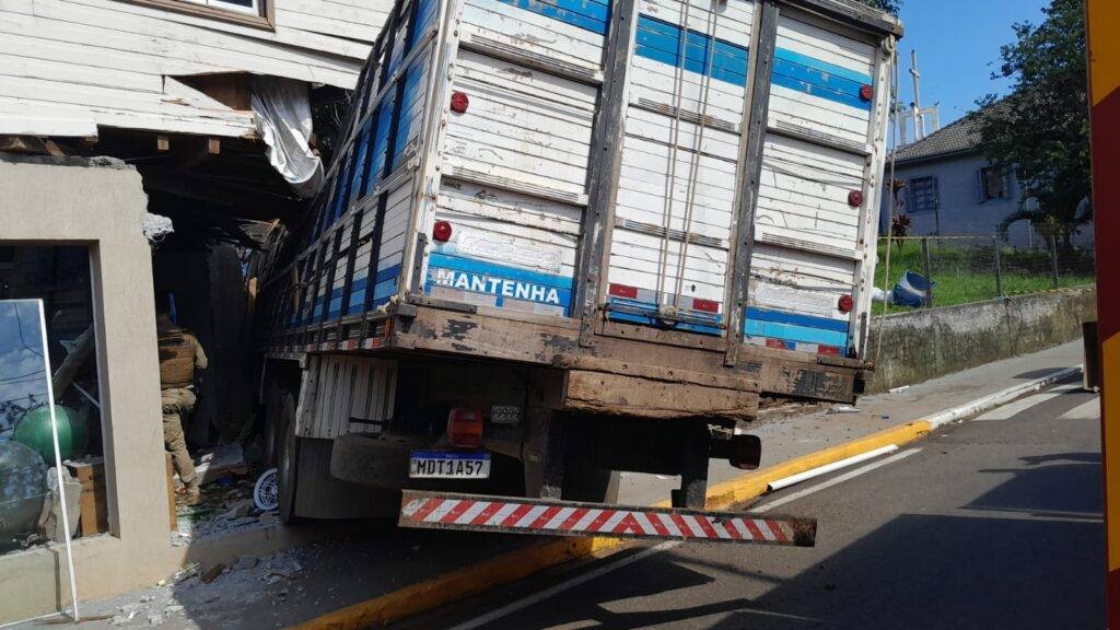 Um caminhão carregado com bois bateu contra um estabelecimento na manhã desta sexta-feira, dia 6, após o motorista de perder o controle enquanto transitava na Avenida Nereu Ramos, no Centro de Ibicaré, Oeste catarinense.