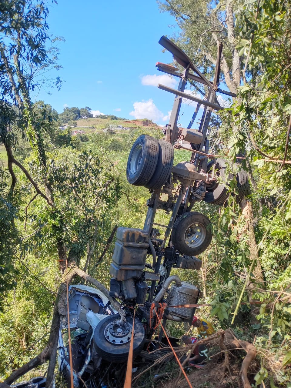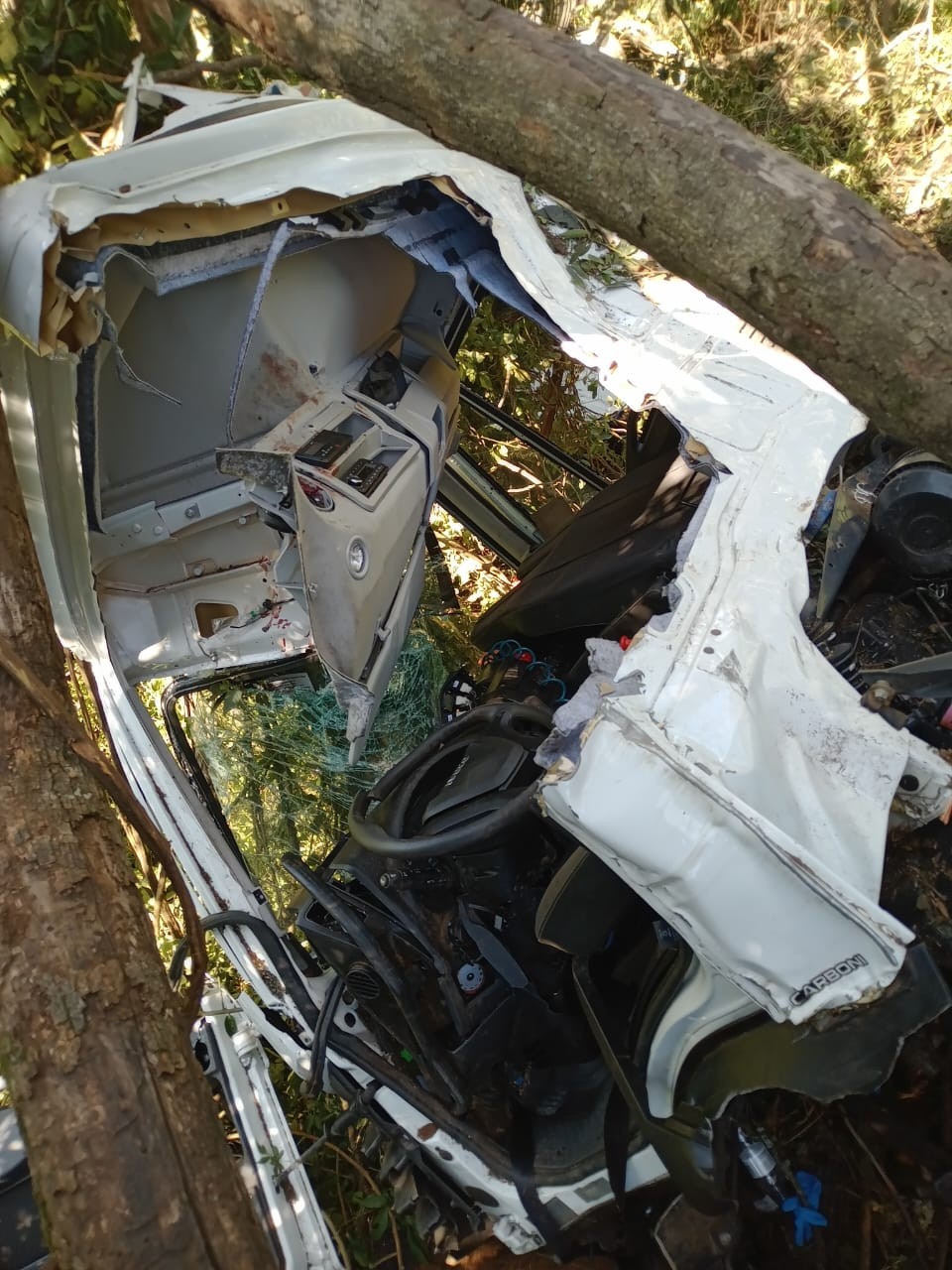 O veículo parou em uma área de mata, em uma ribanceira de aproximadamente dez metros, colidindo contra árvores.