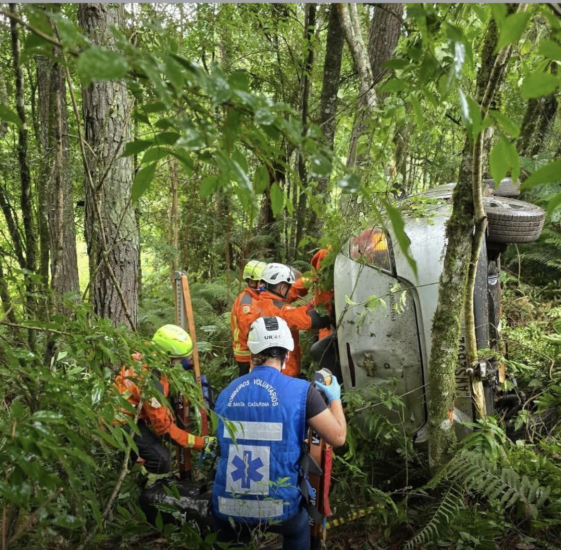 Um motorista de caminhão que estava nas proximidades ficou às margens da rodovia indicando aos bombeiros o ponto exato onde o veículo havia tombado na ribanceira, o que facilitou a localização.